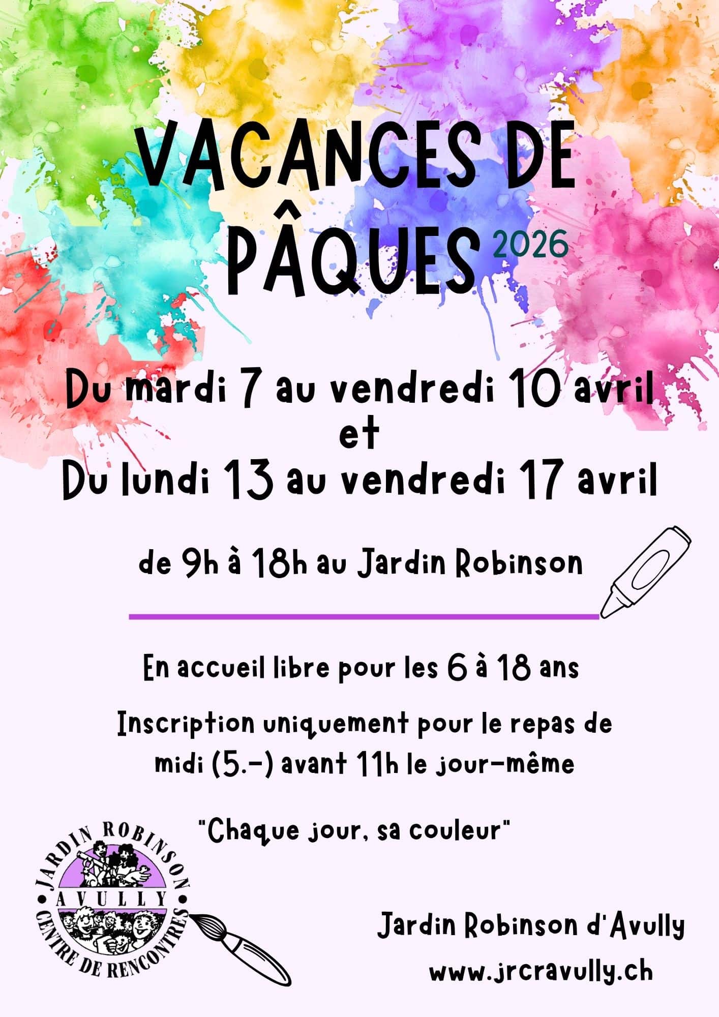 Tarifs : 130.- par semaine et par enfant (repas de midi, animation, goûter, transport inclus)